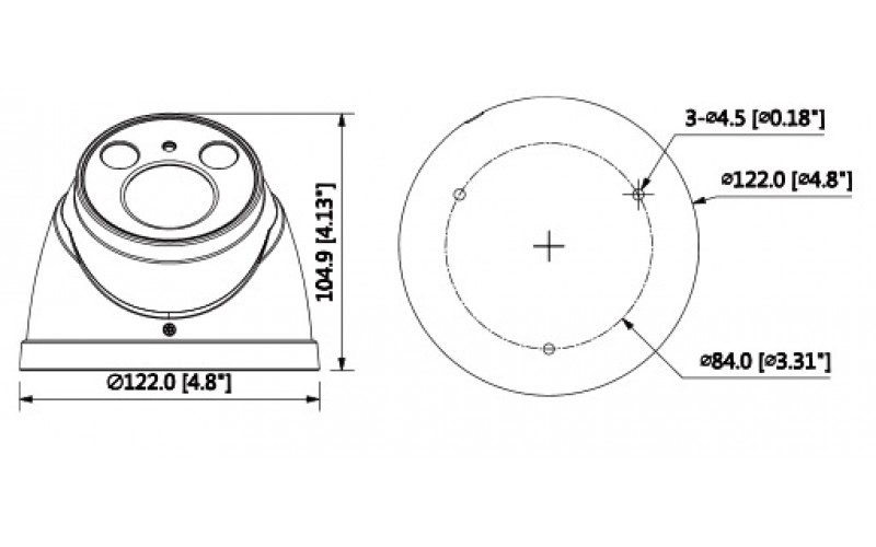 Dahua DH-HAC-HDW2401RP-Z Видеокамера HDCVI Купольная, 4 МР (2688х1520), типа "ШАР" 4MP, цвет белый, материал корпуса - металл.